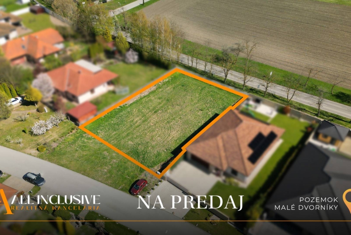 Pozemok sa nachádza v zastavanom území obce Malé Dvorníky a je určený na výstavbu rodinného domu. Všetky inžinierske siete sa nachádzajú priamo pri pozemku, čo výrazne uľahčuje a urýchľuje proces výstavby.