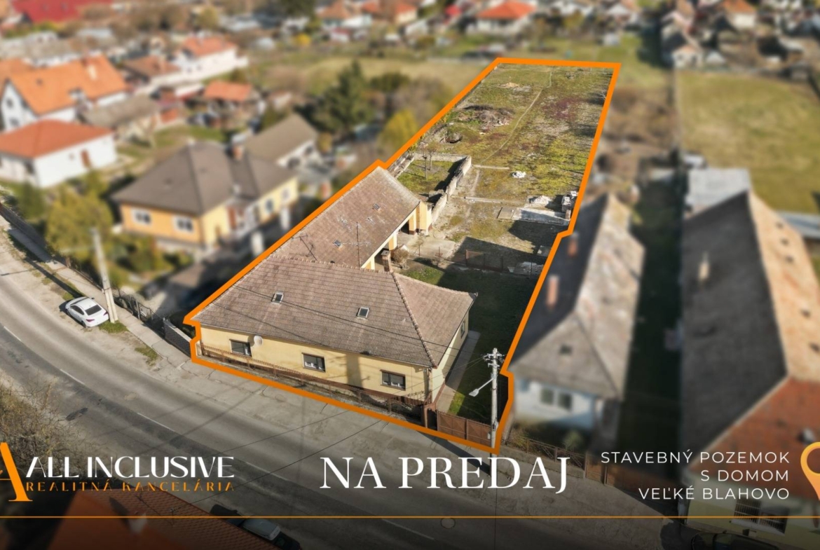 Realitná kancelária ALL INCLUSIVE REAL Vám exkluzívne ponúka na predaj pozemok so starším rodinným domom nachádzajúci sa v obci Veľké Blahovo, len 3 km od Dunajskej Stredy.