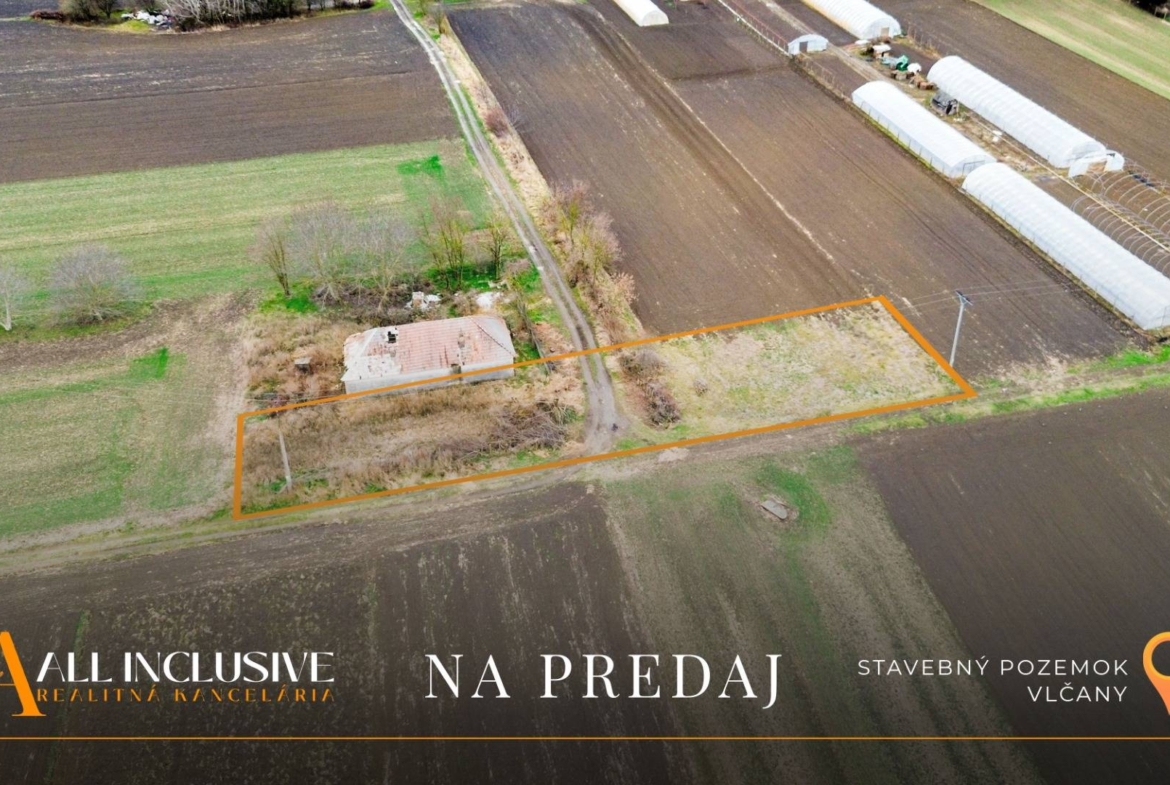 Realitná kancelária ALL INCLUSIVE REAL Vám ponúka na predaj stavebný pozemok v tichej časti obce Vlčany, ideálny na výstavbu rodinného domu alebo rekreačného objektu.